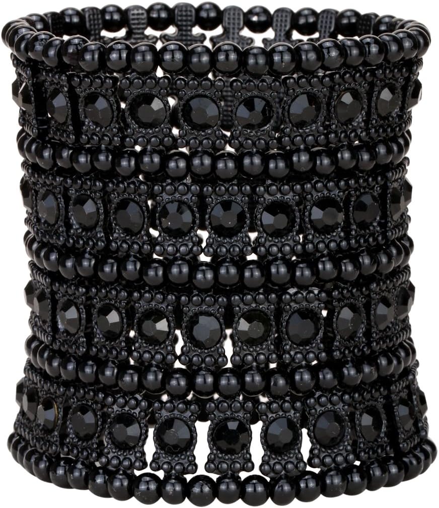 YACQ Women's Multilayer Wide Stretch Cuff Bracelets Fit Various Wrist Sizes - Soft Elastic Band - Lead & Nickle Free