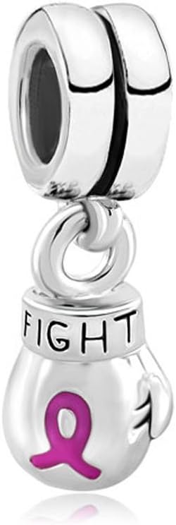 Pink Ribbon Charms for Bracelets Fight Breast Cancer Awareness Boxing Gloves Dangle Charm Beads Compatible with Pandora Bracelets for Women