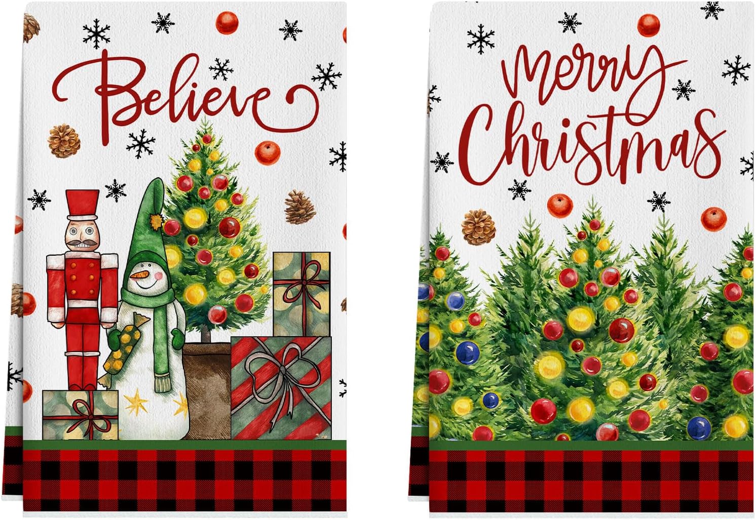 XCHI Nutcracker Snowman Christmas Tree Kitchen Towels Dish Towels 18x26 Inch Xmas Home Kitchen Decorations Hand Towels Set of 2 Drying Dishcloth