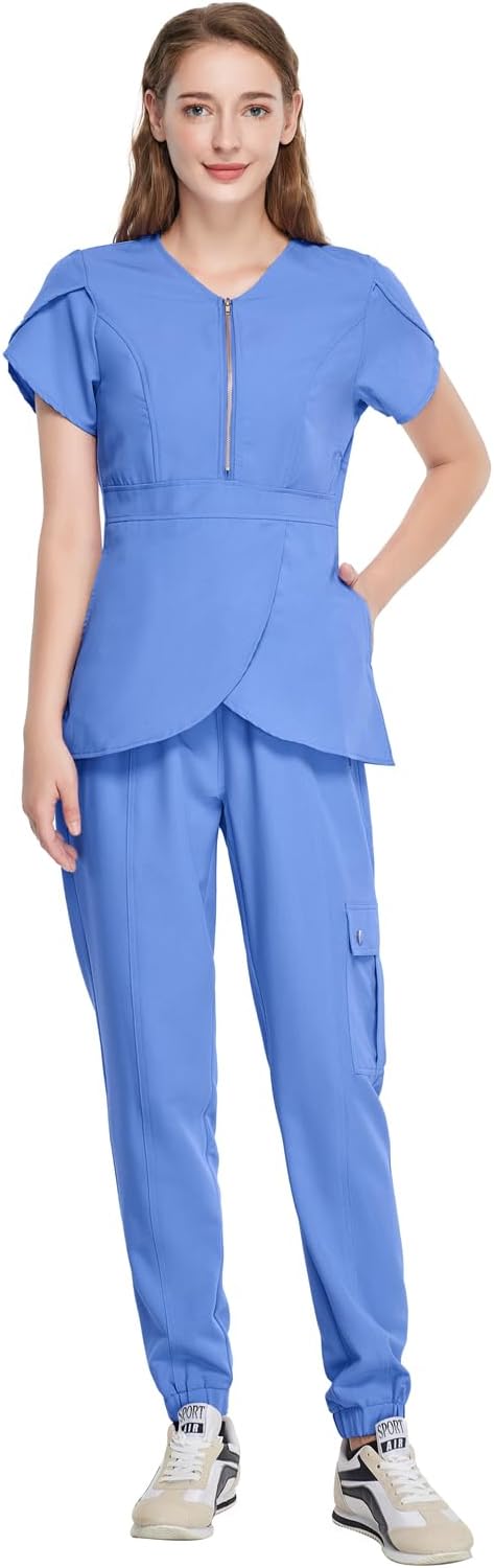 Uniforms World Lotus Scrubs Set for Women — Classic fit Top & Slim Jogging Pants, Yoga Waistband, 7 Pockets, Anti-Wrinkle