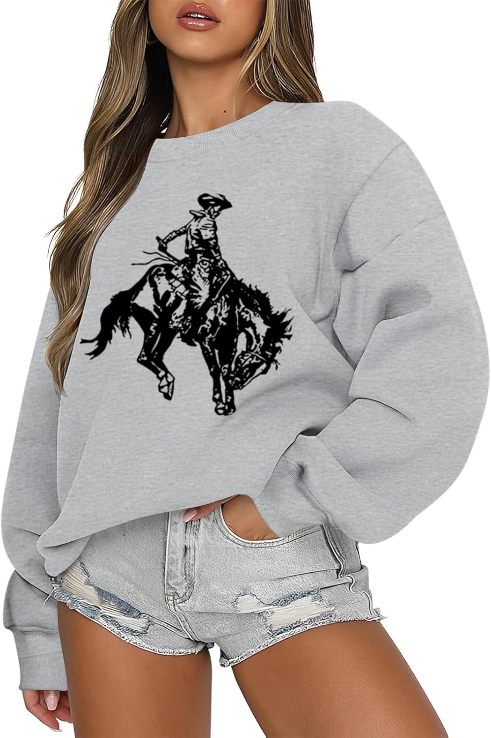 Western Cowboys Graphic Sweatshirts For Women Cowgirls Rodeo Oversized Sweatshirt Country Concert Crewneck Outfits