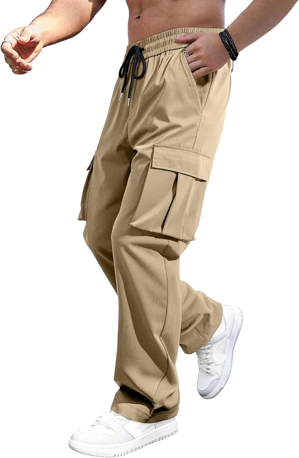 JMIERR Mens Casual Baggy Cargo Pants Stretch Sweatpants Loose Fit Drawstring Hiking Workout Joggers with Multi Pockets