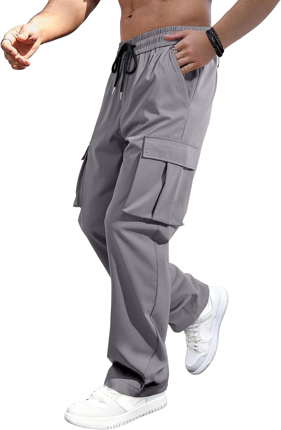 JMIERR Mens Casual Baggy Cargo Pants Stretch Sweatpants Loose Fit Drawstring Hiking Workout Joggers with Multi Pockets