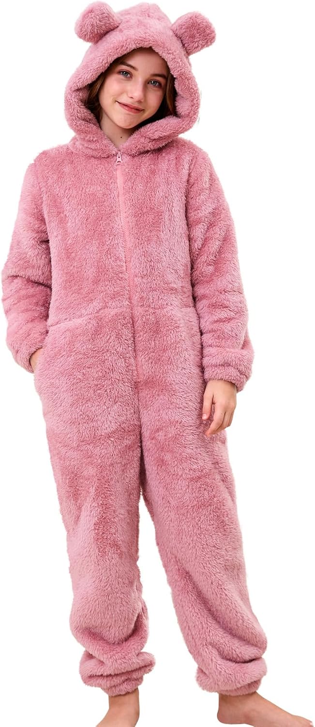 Kissonic Girls Fleece Zip Up Jmpsuits Hooded Onesie Rompers Kids Costume Winter Clothes