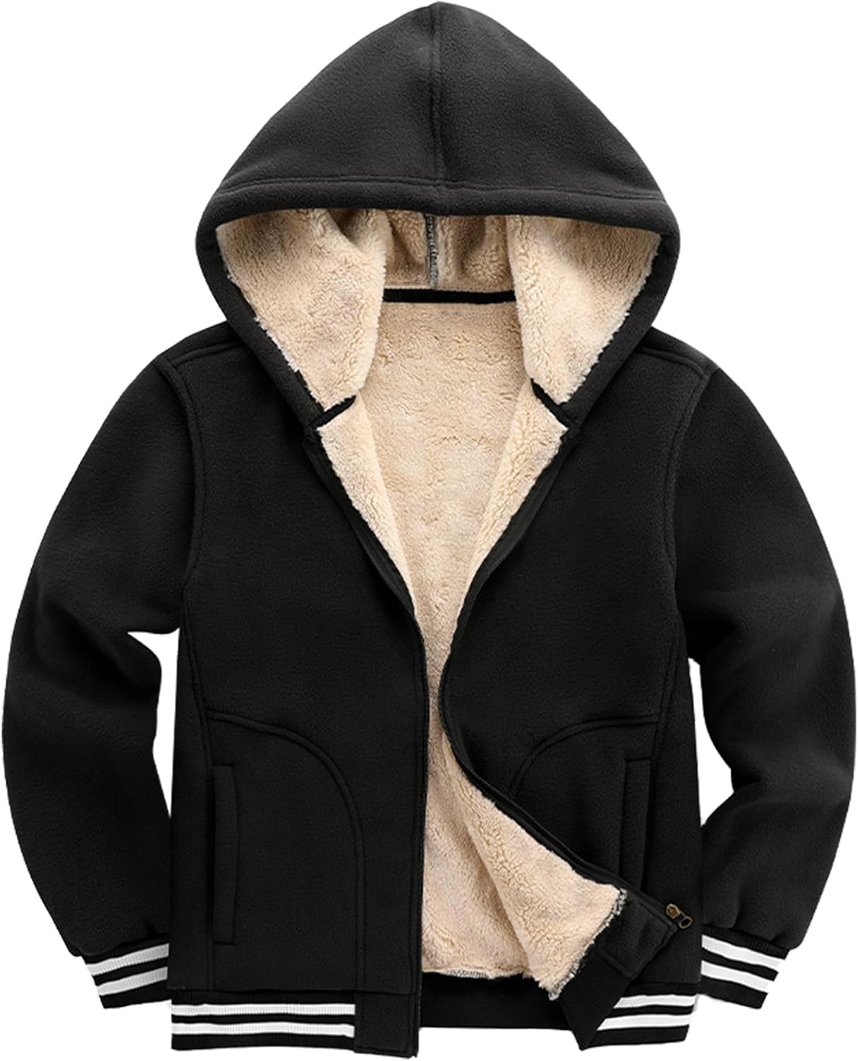 Kissonic Men's Polar Fleece Jacket Sherpa Lined Zip Up Hoodie Warm Winter Casual Hooded Sweatshirt with Pockets