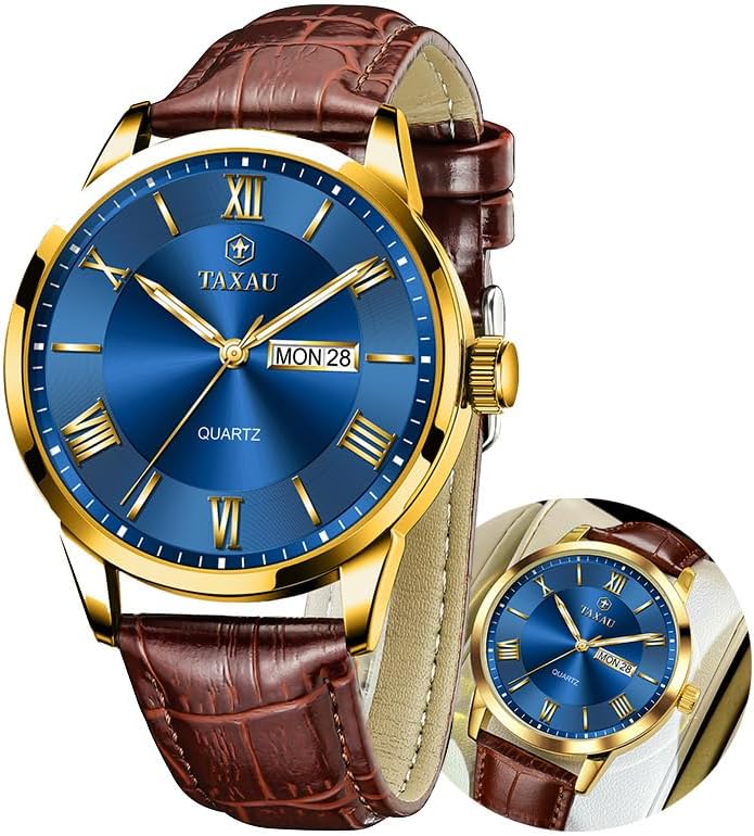 Men's Watch Big Face Easy Read Arabic Numeral Dress Watches for Men Classic Black Brown Leather Band Analog Mens Wrist Watch with Day and Date Fashion Business Waterproof Luminous Quartz Watch