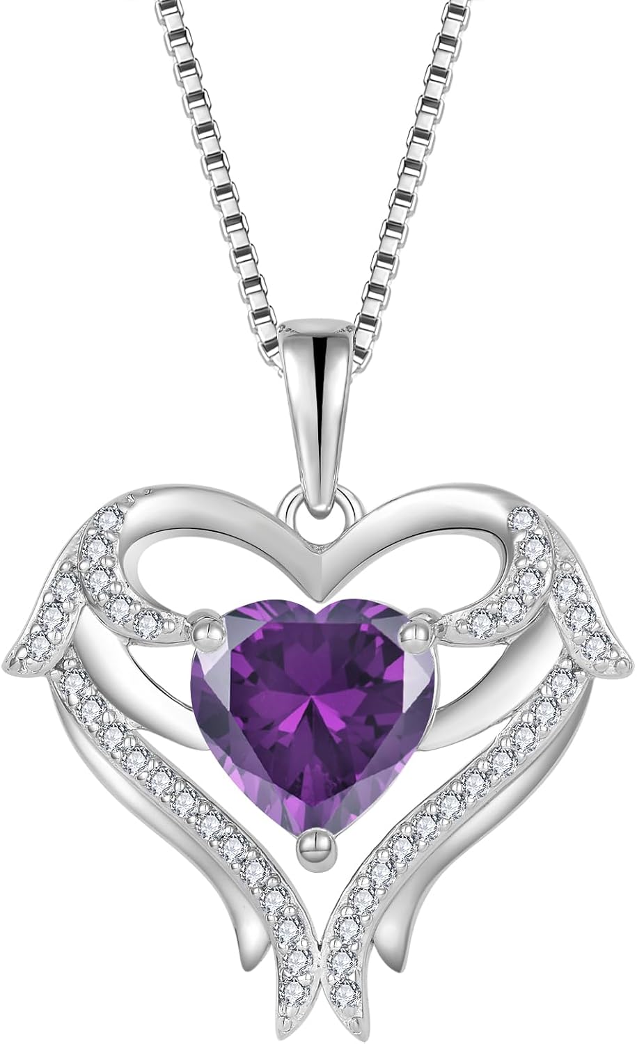 FJ Heart Angel Wings Pendant Necklace 925 Sterling Silver Birthstone Jewelry Gifts for Women