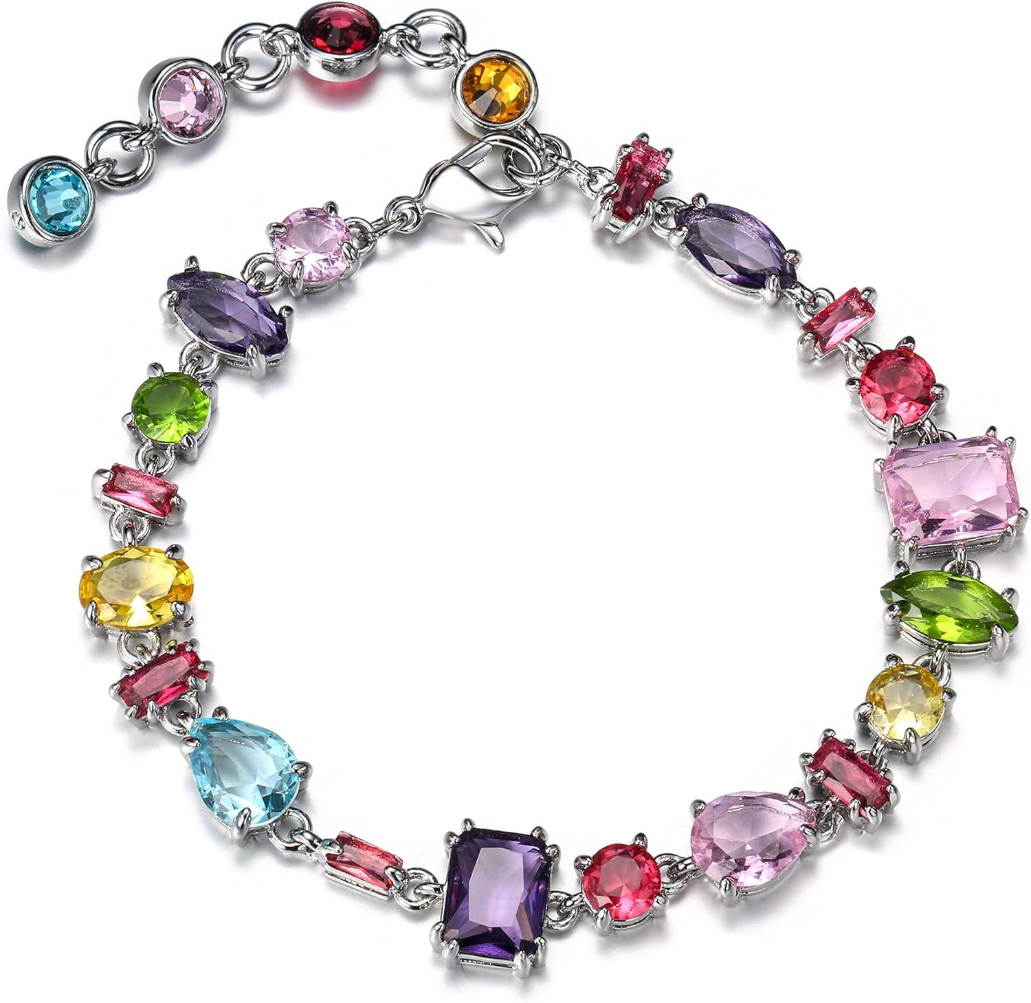 EleQueen Gorgeous Sparkly Cubic Zirconia Multiple Color and Shape Link Bracelet Jewelry Gift for Women Christmas