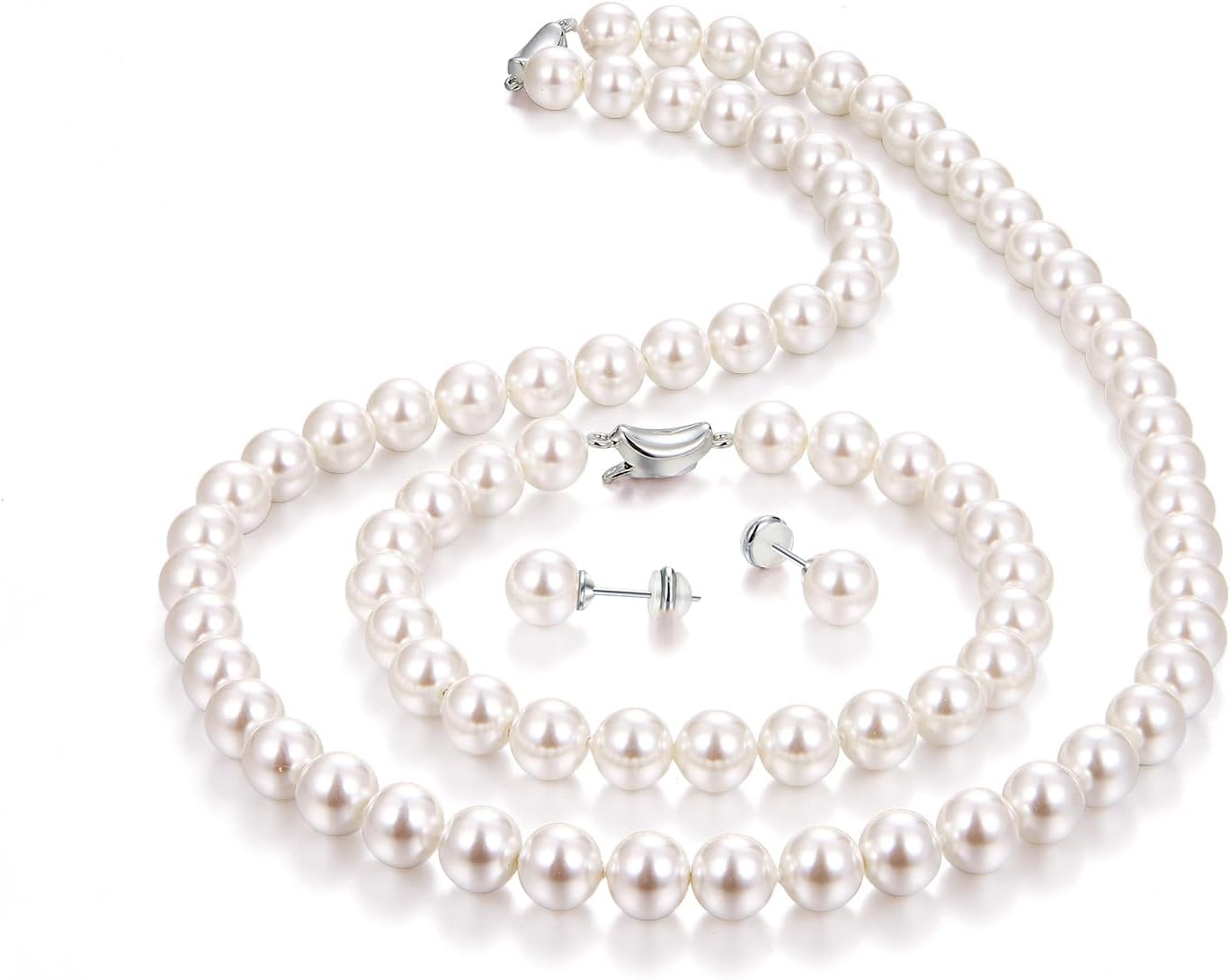 Pearl Necklace and Earring Set Include Stunning Bracelet, Pearl Jewelry Set for Women with Preserved Rose Box