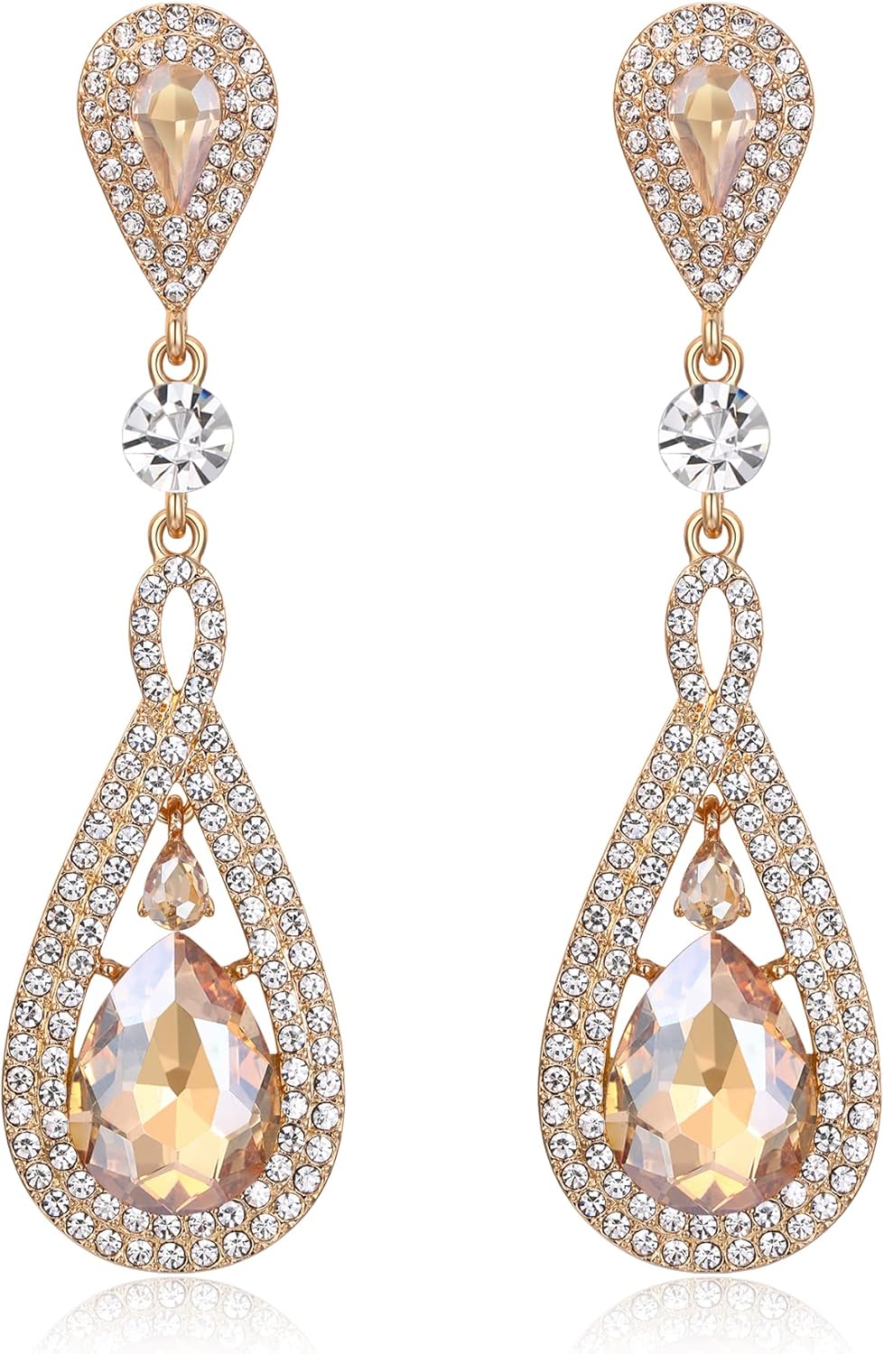 EleQueen Austrian Crystal Long Pear Shape Teardrop Wedding Earrings for Brides, Art Deco Chandelier Jewelrys for Women Prom
