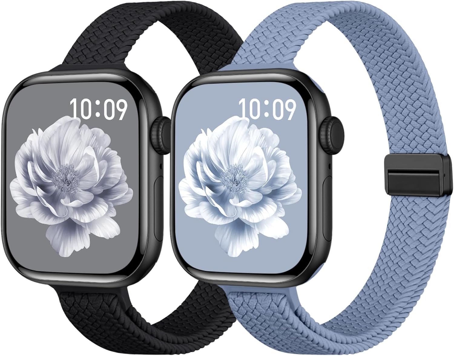 Slim Braided Stretchy Band Compatible with Apple Watch Bands 40mm 41mm 38mm 42mm 44mm 45mm 46mm 49mm Women Men, Thin Nylon Sport Solo Loop Magnetic Strap for iWatch Series 11 10 9 8 7 6 5 4 3 SE Ultra
