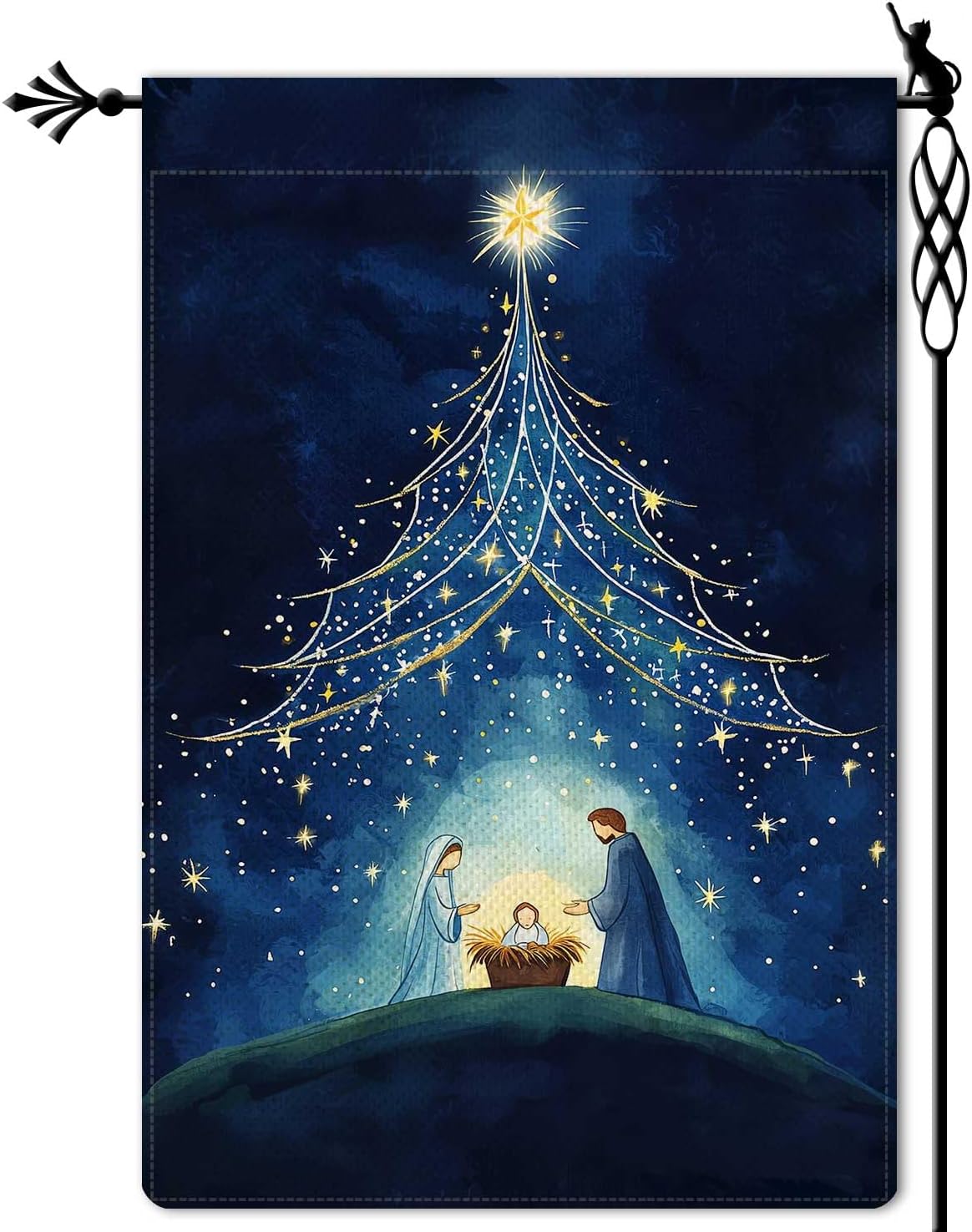 - DOUBLE SIDED FLAG -- This O Holy Night Garden Flag is double sided with the image printed and visible from both sides and text also reads correctly from both sides. ( Flag Pole NOT included)