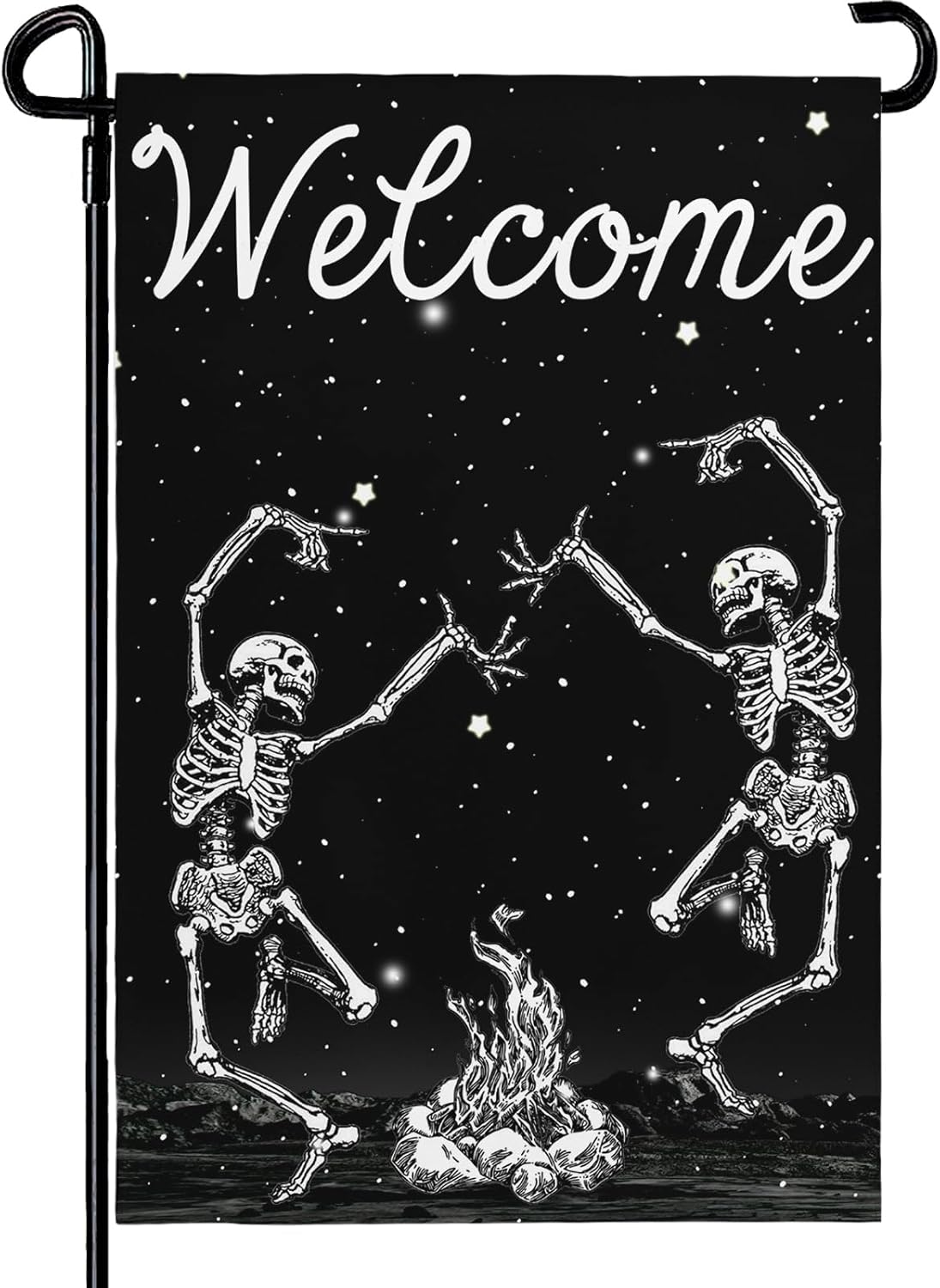 - Easy To Install: All scary dancing skeleton garden flags feature a sleeve at top for use with any standard flag pole or stand, easily slip the flags through the holes on either of the top sides to hang them on your garden flag stand