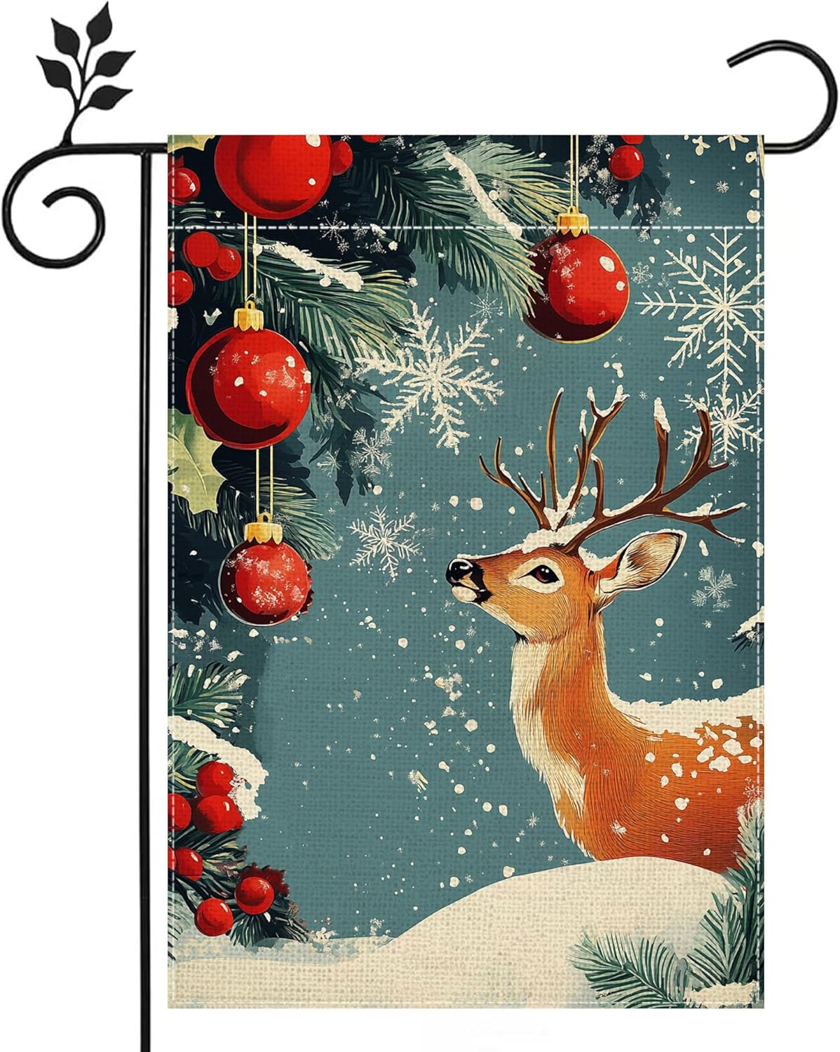 - HOME DECOR: The winter garden flag is perfectly decorated with Christmas reindeer, snowflake and xmas balls to add color and vibrancy to your cozy home. Welcome guests to your home with this beautiful mini garden flag.