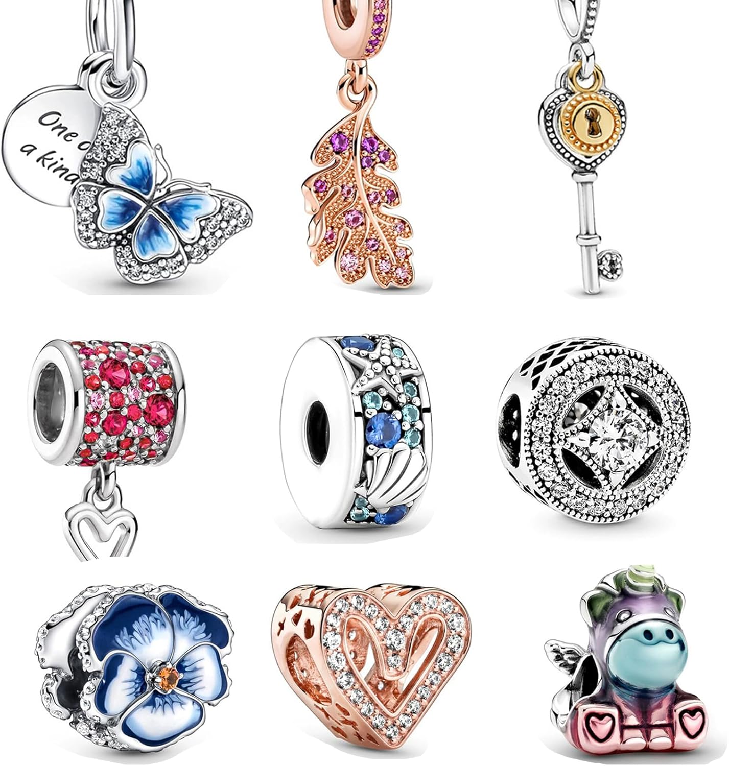 9 Pack Silver Bead Charms for Pandora Bracelets and Necklaces Charm for Woman, Dangle Pendant Beads Set