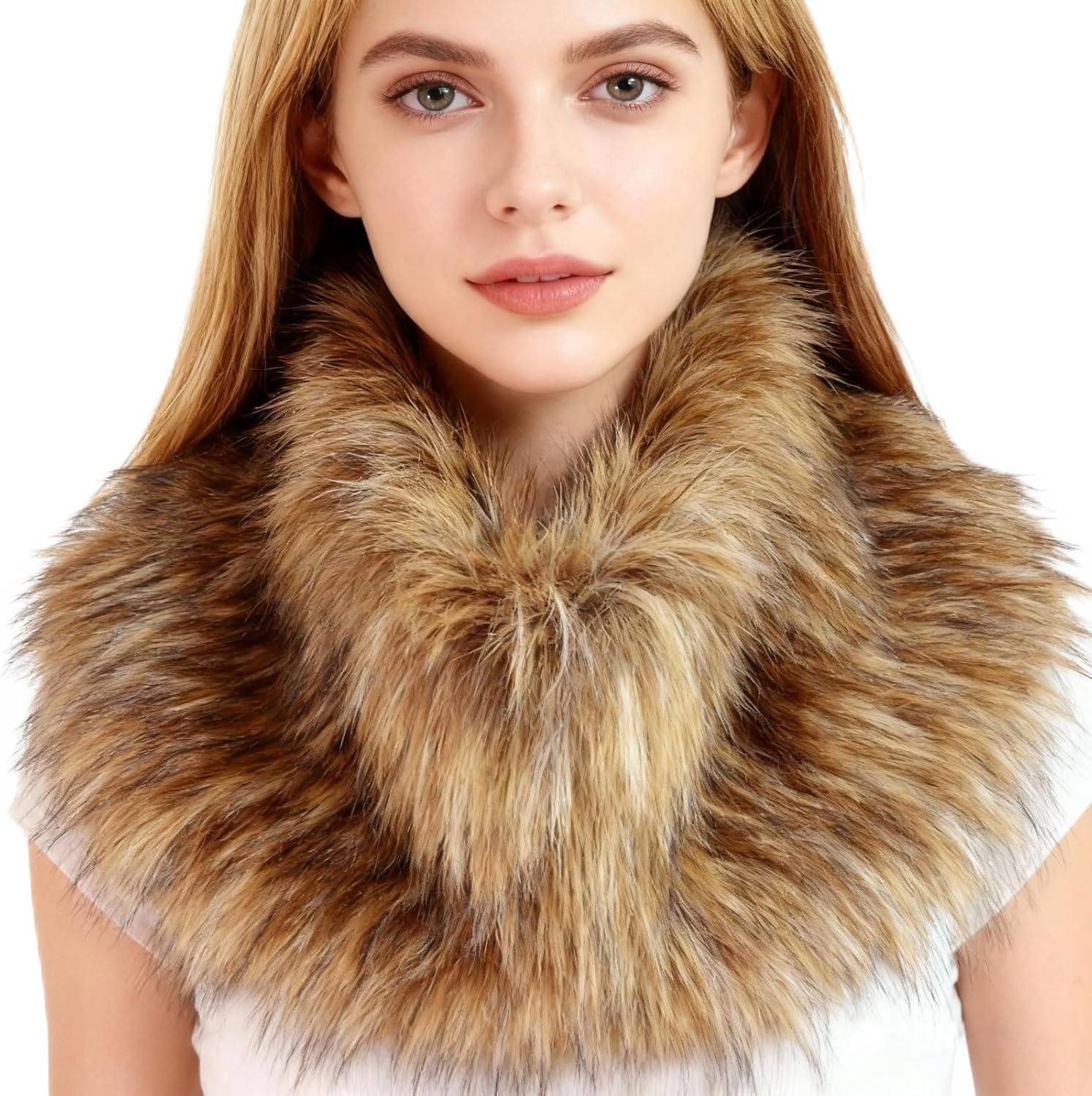 GREUS Faux Fur Collar Scarf for Winter, Soft Plush Shawl Neck Warmer Wrap, Fluffy Fake Fur Collar for Coats, Jackets, Costume