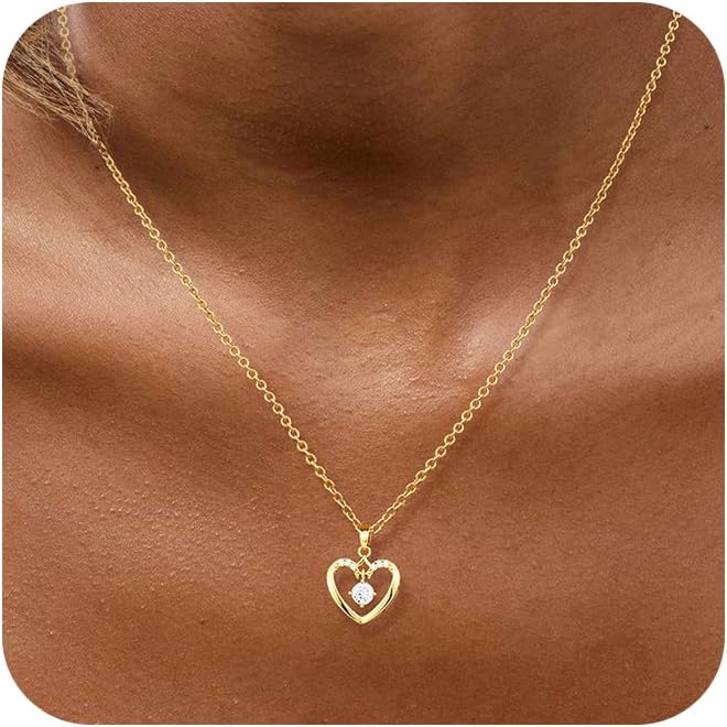 18K Gold Plated Necklace for Women, Heart Pendant Necklace Chunky Paperclip Choker Necklace for Gifts on Birthday Holidays Jewelry for Women