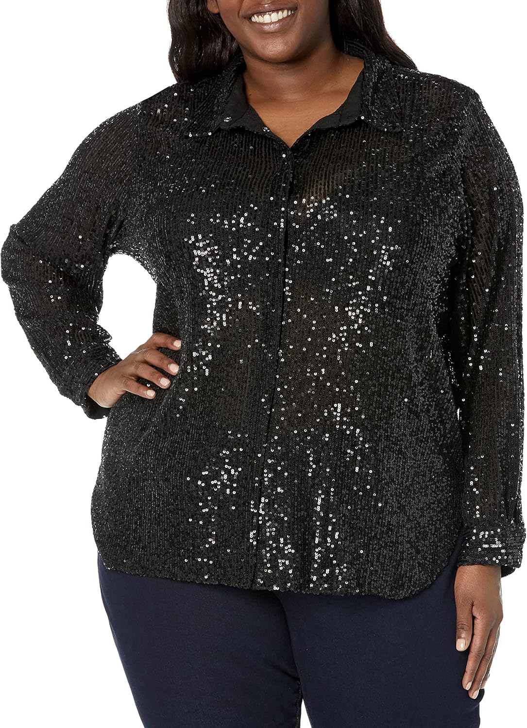 Calvin Klein Women's Plus Size Collar Oversize Formal Sequin Mesh Blouse