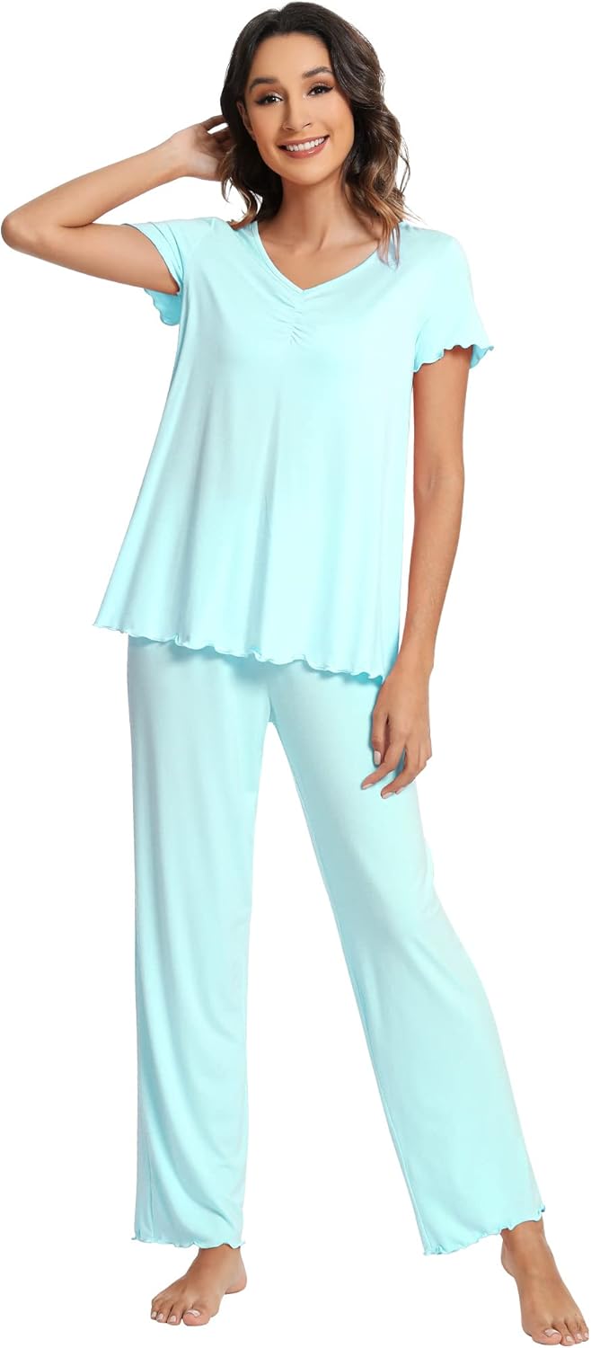 WiWi Viscose from Bamboo Pajama Sets for Women Super Soft Pjs Short Sleeve with Pants Cooling Sleepwear Loungewear S-XXL