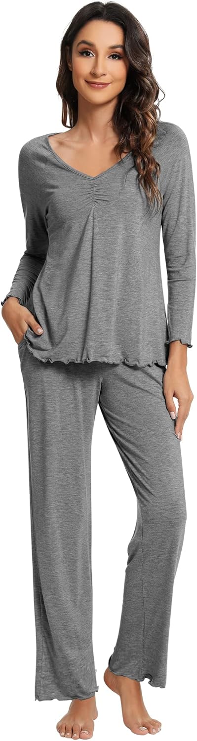 WiWi Viscose from Bamboo Pajama Sets for Women Super Soft Pjs Short Sleeve with Pants Cooling Sleepwear Loungewear S-XXL