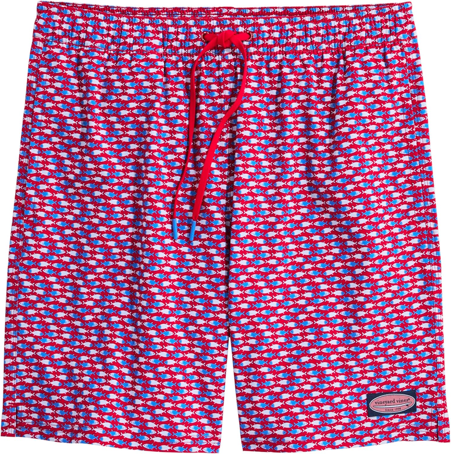 Vineyard Vines 7 Inch Printed Chappy Swim Trunks, Lghthse Red/Td Blue, M
