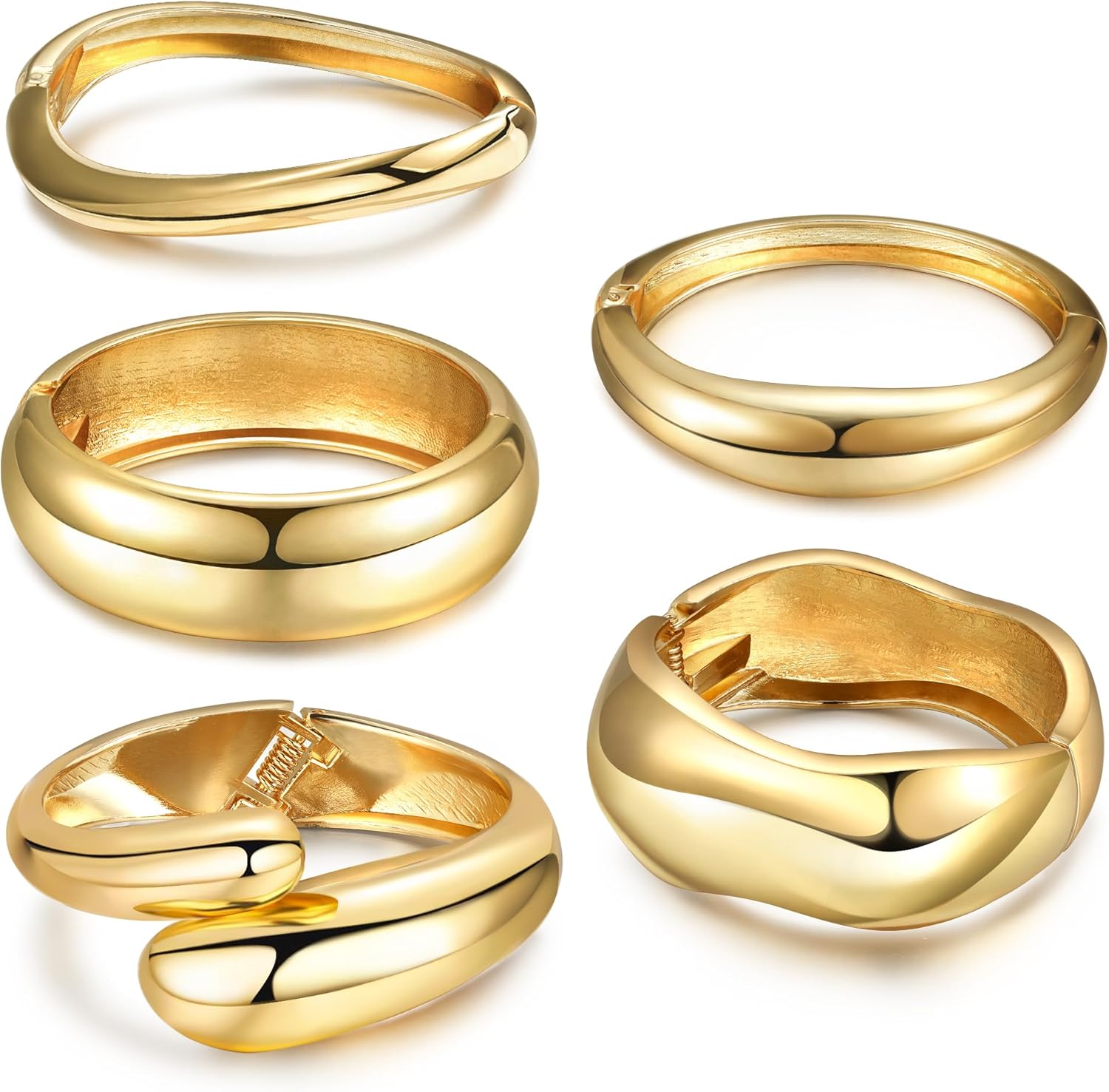RIOSO Gold Chunky Bracelets for Women Gold Bangles Thick Cuff Big Large Statement Set Women's Bangle Chunky Bracelet