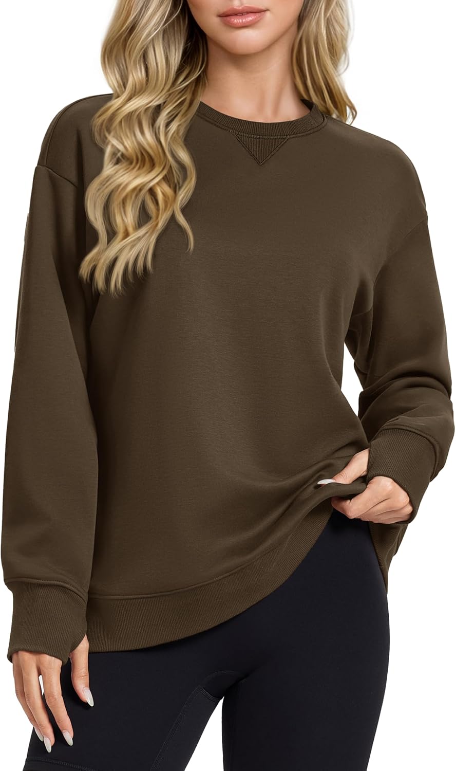 MAGCOMSEN Women's Fleece Lined Sweatshirts Pullover Crewneck Sweater Loose Fit Casual Winter Warm Tops with Thumb Holes
