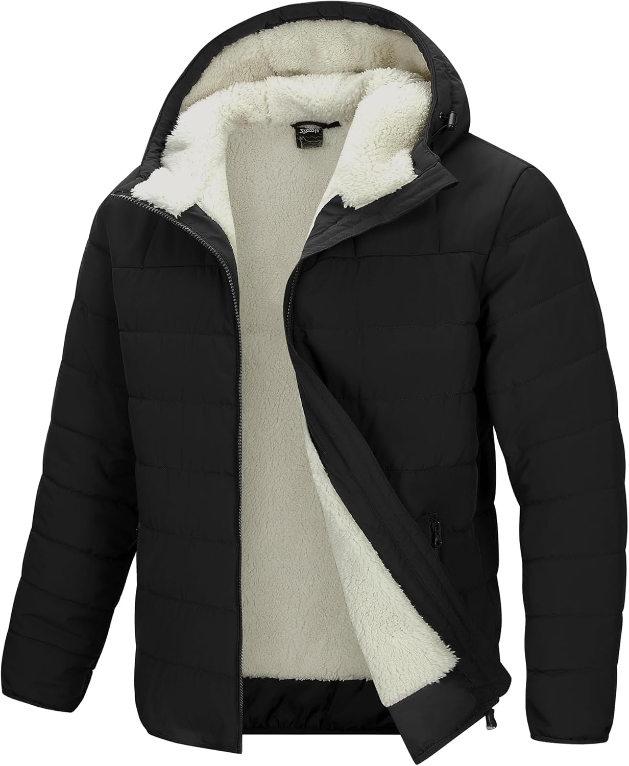 33,000ft Men's Hooded Winter Puffer Jacket Sherpa Fleece Lined Lightweight Warm Quilted Insulated Puffy Coat