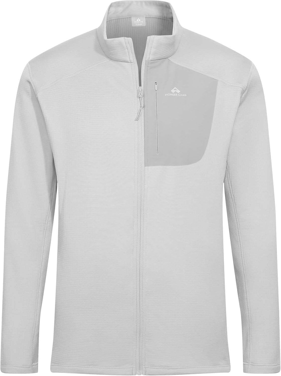 Pioneer Camp Mens Grid Fleece Jacket Full Zip Up Professional Mid Layer Outdoor Winter Thermal Sweatshirt with Chest Pocket