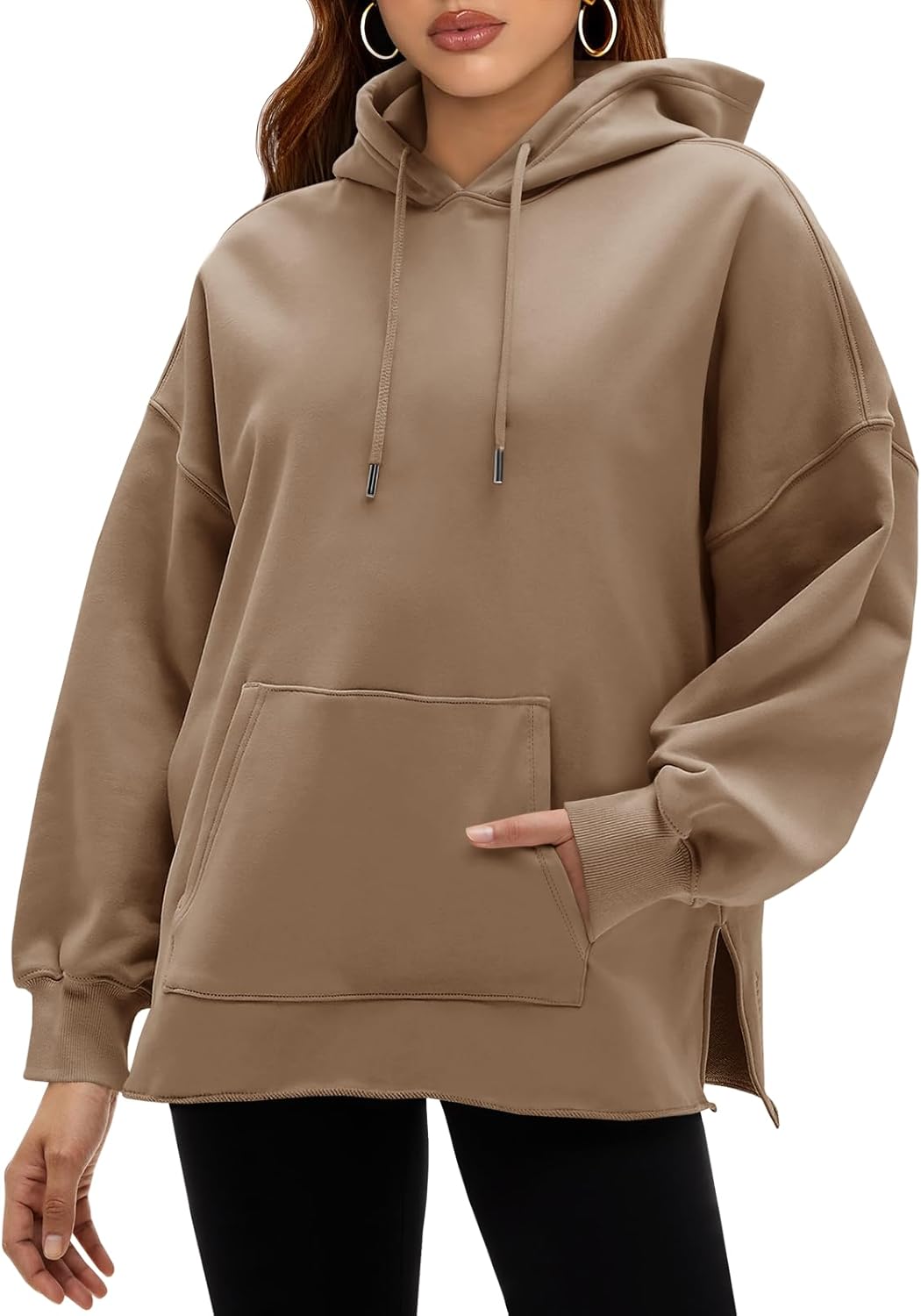 Fisoew Women's Hoodies Oversized Sweatshirts Casual Long Sleeve Side Slit Pullover Tops Fall Winter Outfits with Pocket