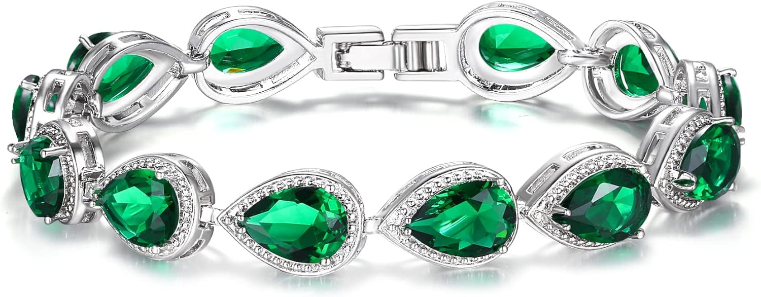 EVER FAITH Gorgeous Cubic Zirconia Wedding Tennis Bracelet Birthstone Teardrop Bracelet for Women Prom Bridal Jewelry