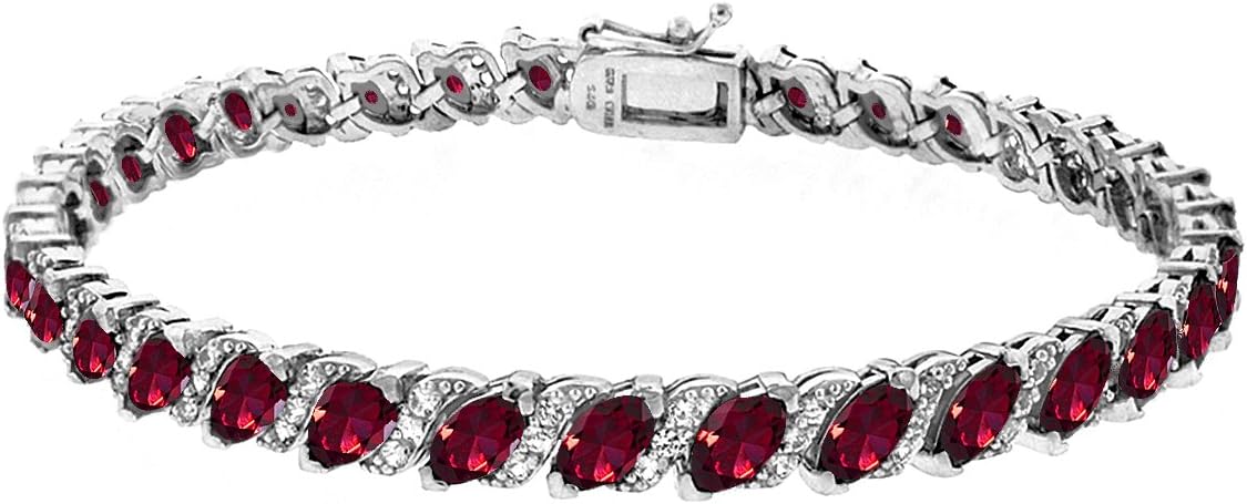 B. BRILLIANT Bracelet for Women, Birthstone Bracelet, Marquise Cut Genuine or Synthetic Gemstone Bracelet, Tennis Bracelet, Sterling Silver Bracelets or Gold Flash Silver Bracelet with Gift Box