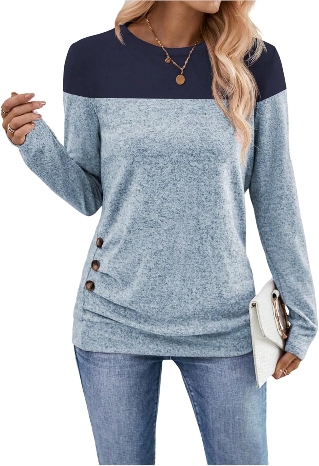 SOLY HUX Women's Color Block Long Sleeve T Shirt Crew Neck Button Casual Fall Tops