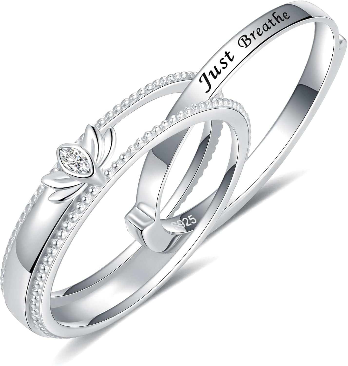 Just Breathe Rings for Women 925-Sterling-Silver – Encouragement, Personality & Peaceful Self-Acceptance Gift for Her