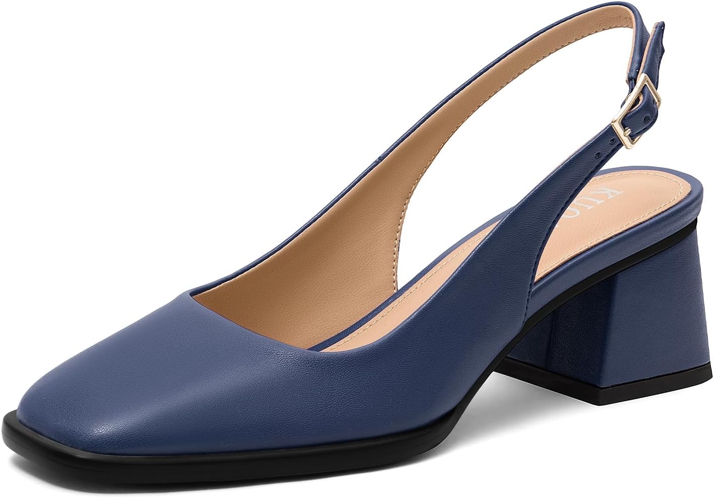 KUOARN Chunky Heels for Women Black Slingback Pumps,2.3 Inch Block Heels Closed Square Toe Pumps Shoes for Work,Party