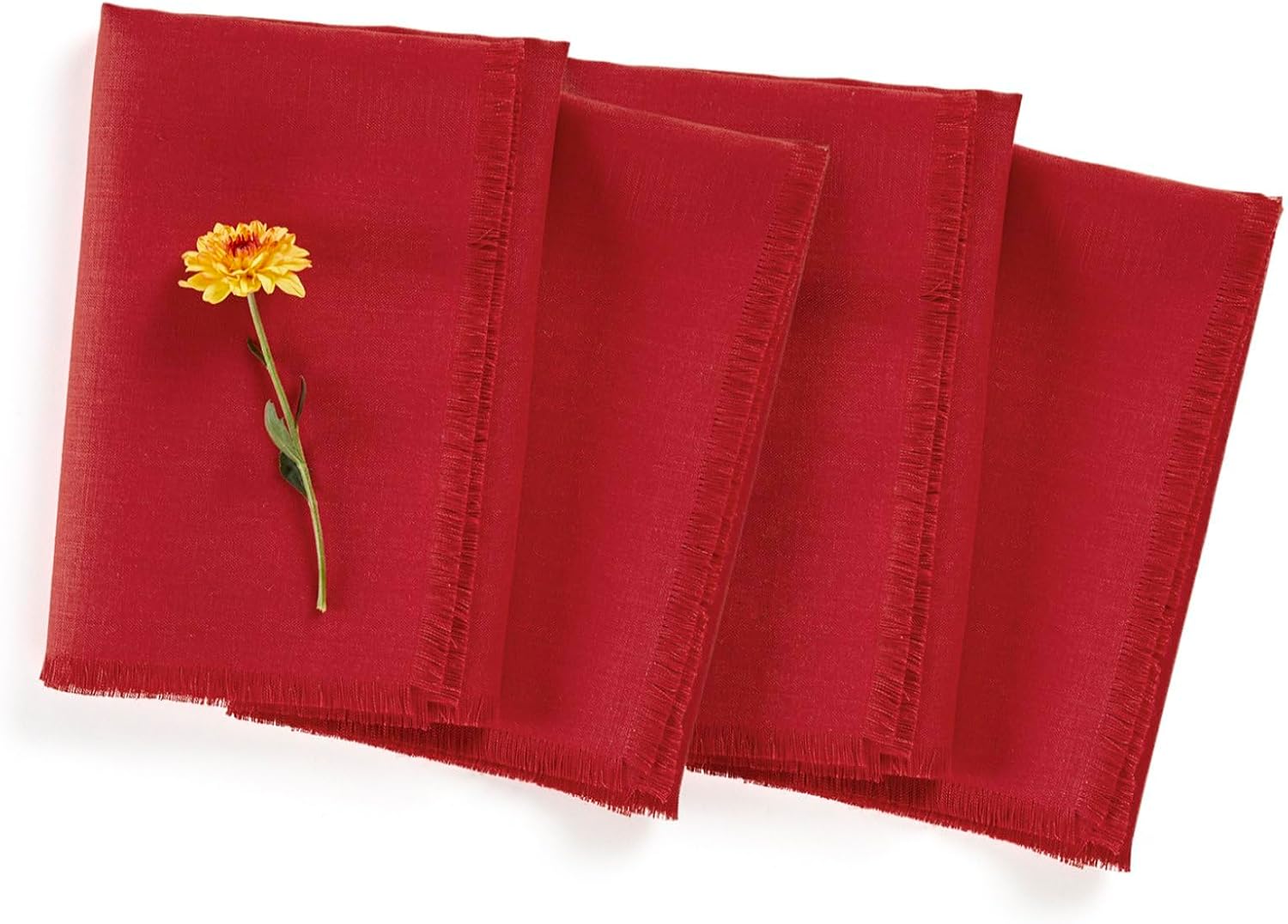 Solino Home Cherry Red Linen Napkins Set of 4-100% Pure Linen Fringe Dinner Napkins 20 x 20 Inch for Mothers Day