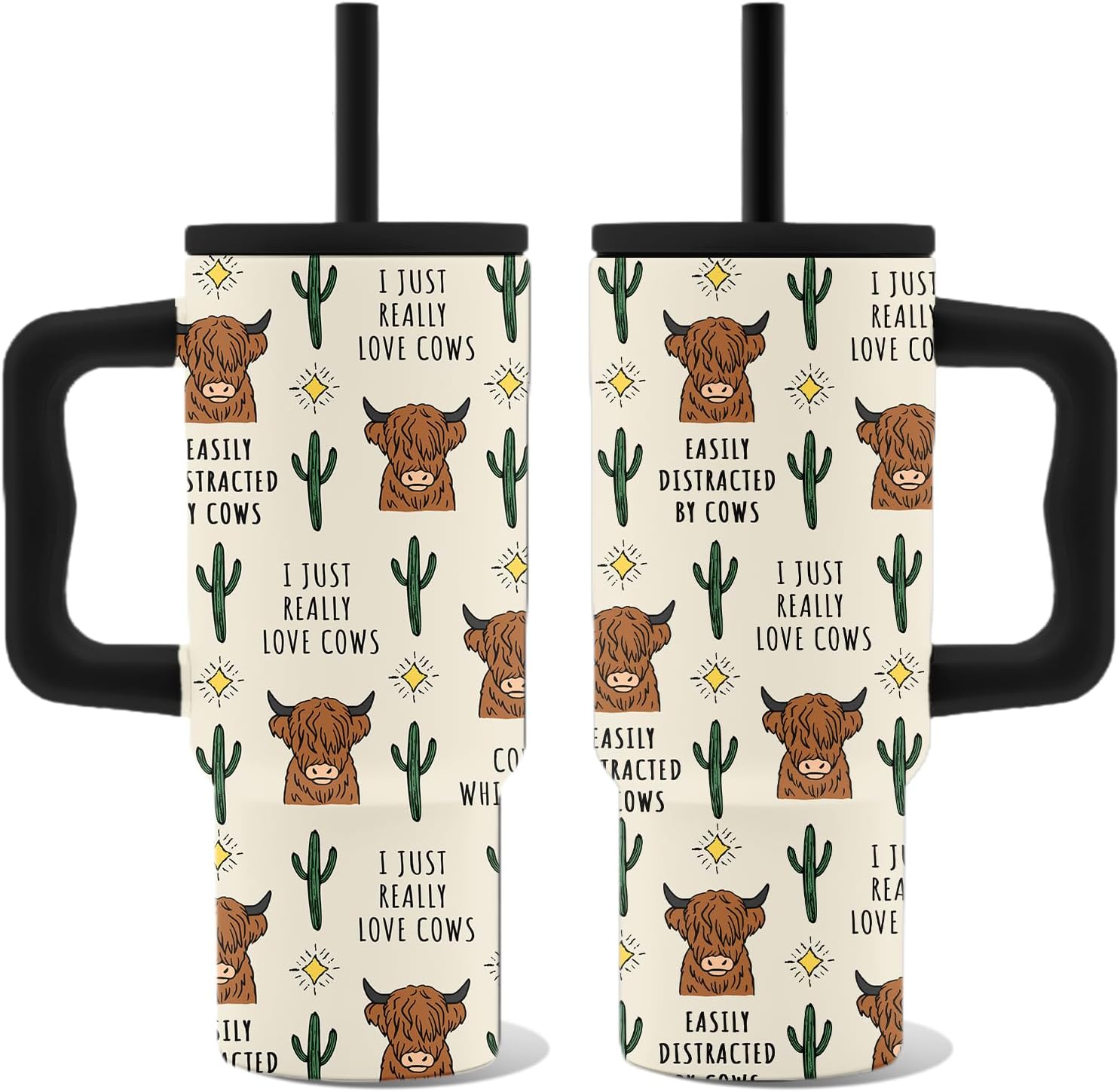 Highland Cow Tumbler with Handle 24oz, Insulated Stainless Steel Western Cows Cup, Highland Cow Gifts for Women Teens Cowgirl Farmer Animal Lovers