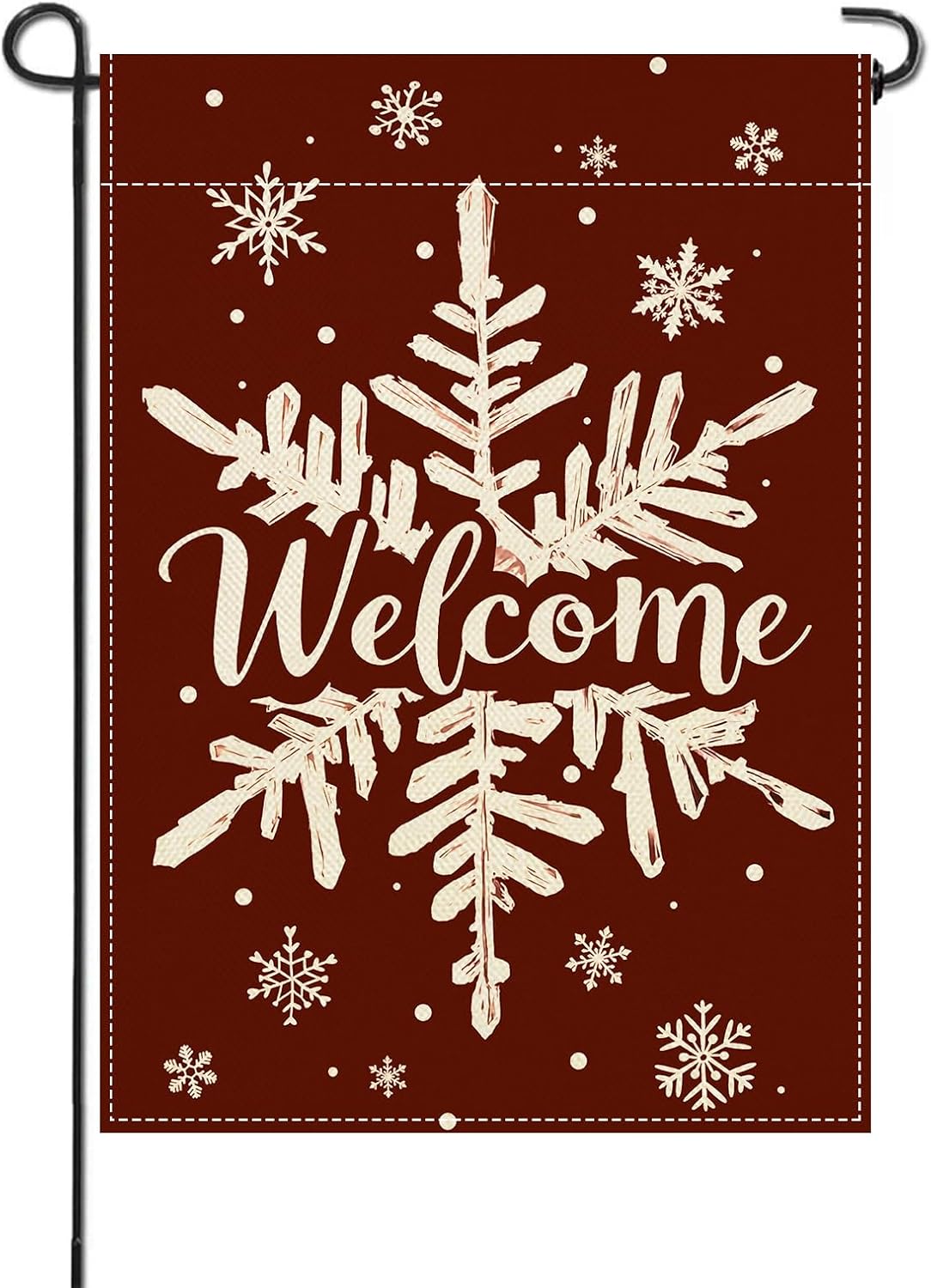 Artofy Welcome Christmas Snowflake Small Decorative Garden Flag, Red Xmas Yard Lawn Outside Decor, Winter Holiday Burlap Outdoor Home Decoration Double Sided 12 x 18