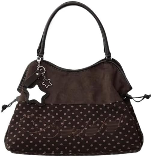 Brown Polka Dot Suede Hobo Bag for Women Whimsy Twee Vintage Large Capacity Casual Shoulder Handbag