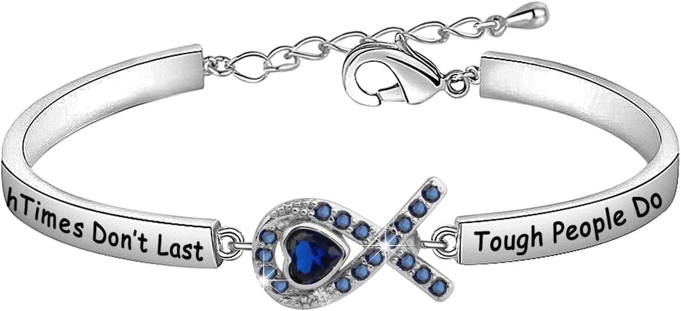 CENWA Blue Ribbon Awareness Charm Colon Cancer Fighter Bracelet Tough Times Don’t Last Bracelet Gift for Cancer Survivor