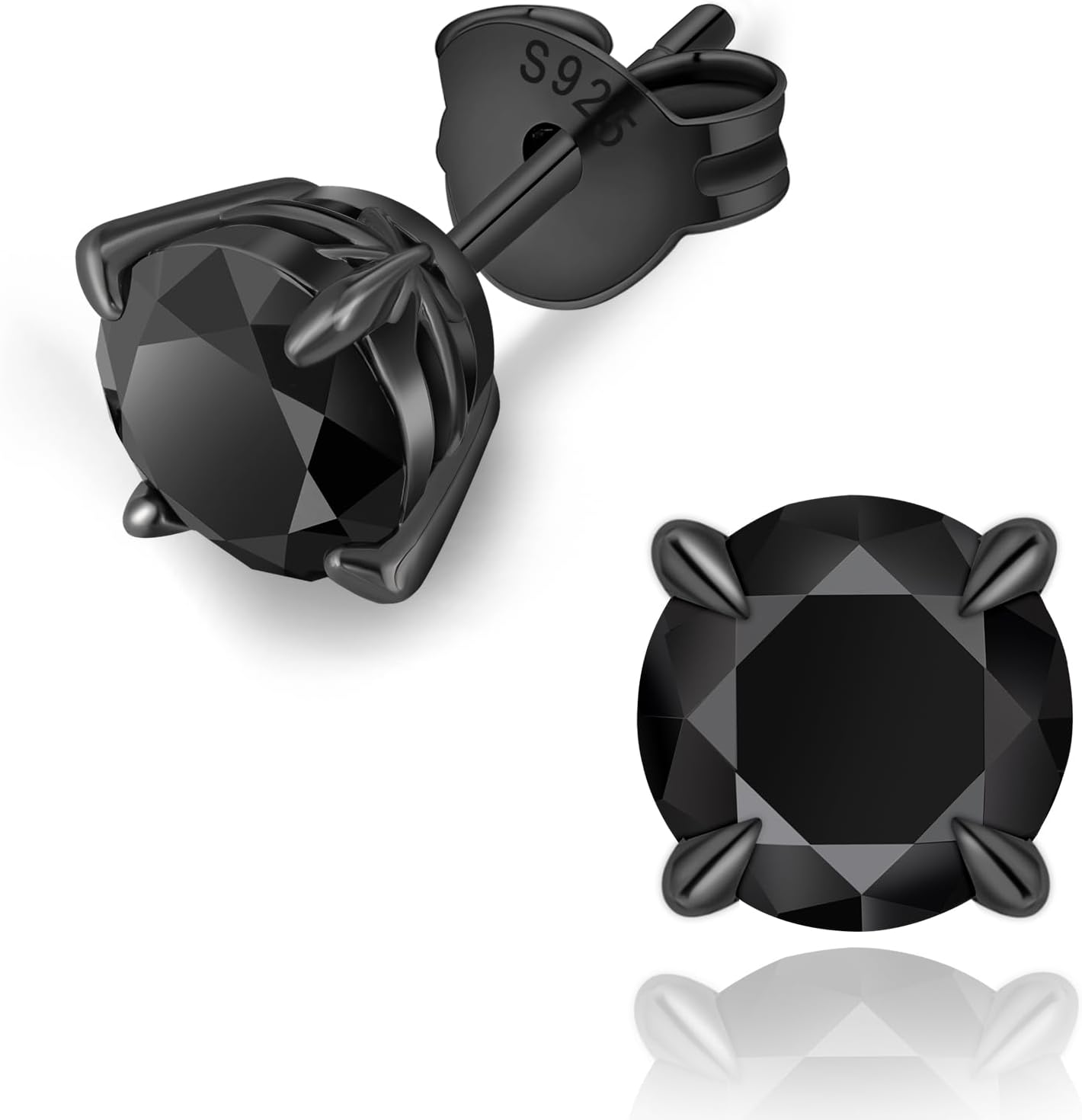 KRKC Black Moissanite Stud Earrings for Men, D Color VVS1 Clarity, Lab Created Diamond Earrings, Vermeil 925 Sterling Silver Hypoallergenic 14K Black Gold Friction Back Earrings Jewelry for Men Women Gift