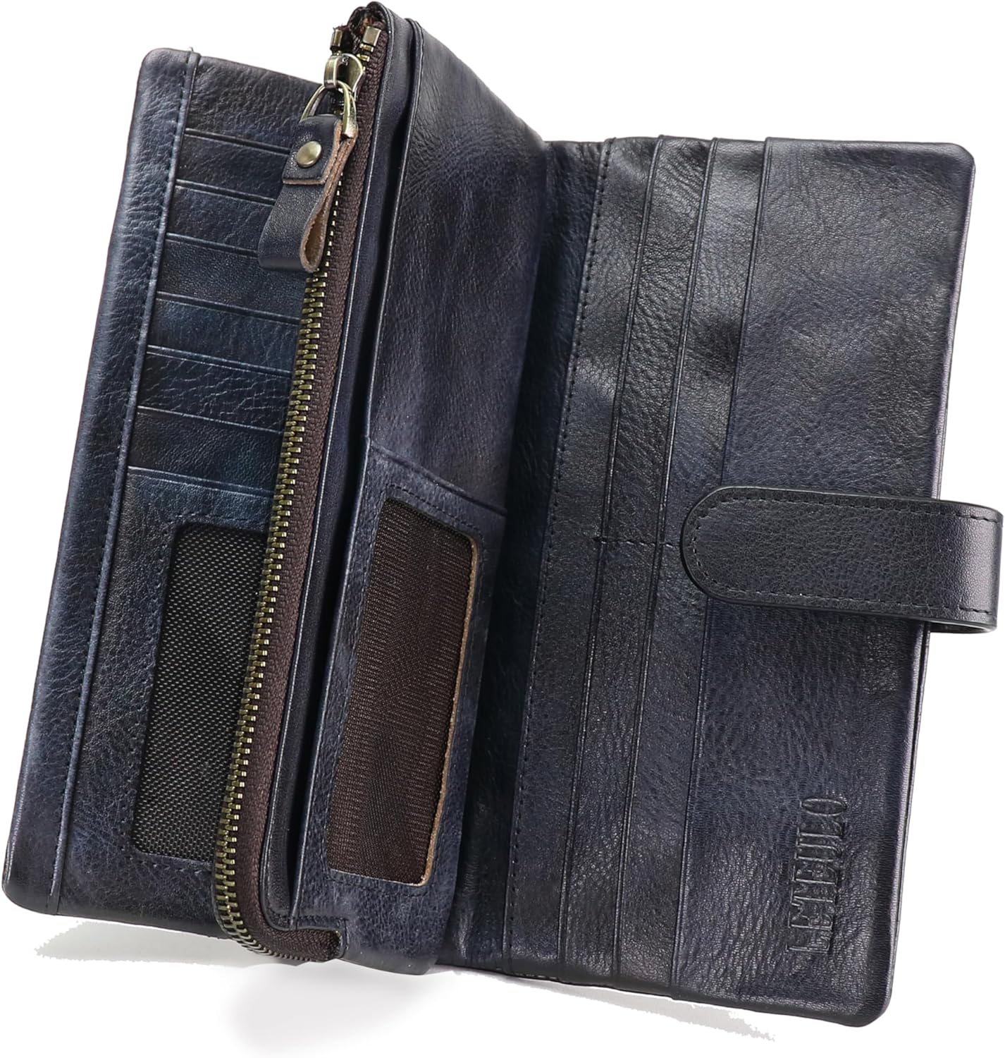 Women's RFID Blocking Genuine Leather Wallet Vintage Hand Rubbing Wallets Organizer | RFID Blocking, Vintage, Hand Rubbing, Organizer