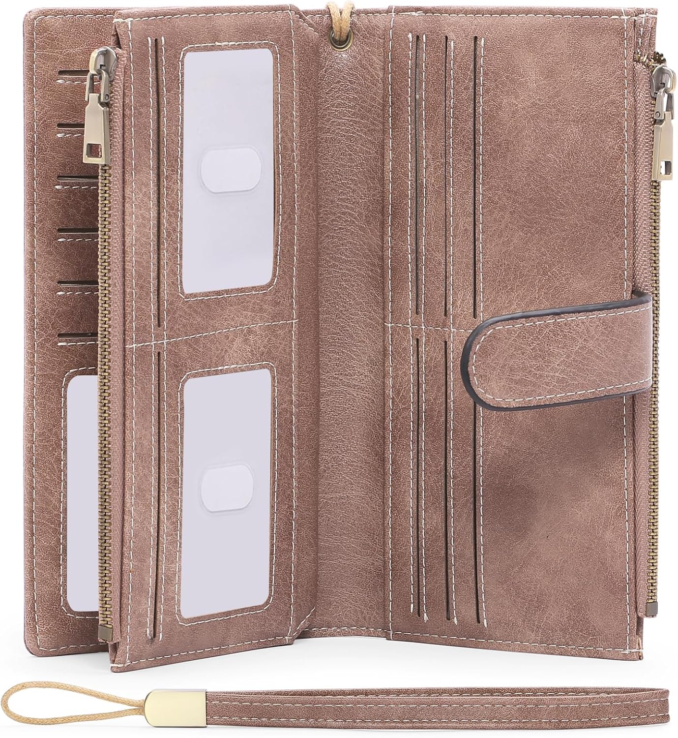 GOIACII Womens Wallets Large Capacity Credit Card Holder Rfid Wallet Women Double Zipper Pocket Leather Bifold Ladies Wristlet Clutch Wallet