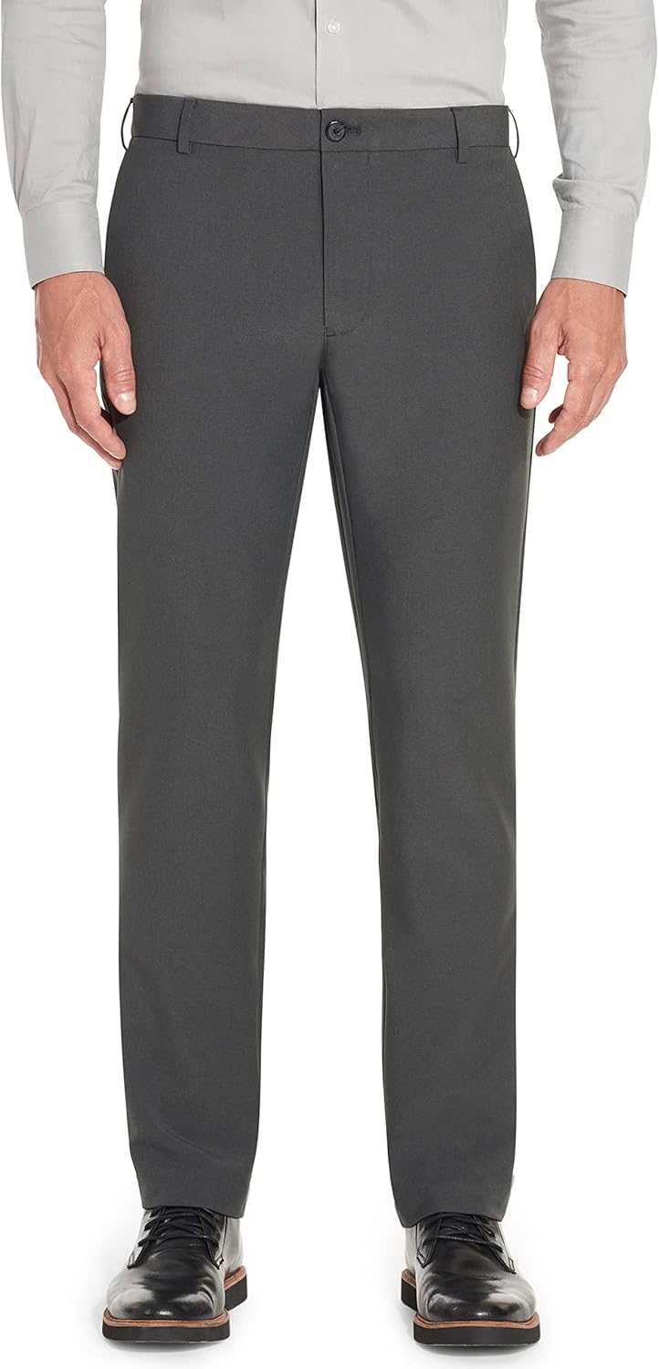 Van Heusen Mens Temperature Control Slim Fit Flat Front Stretch Dress Pant, Non-Iron, Stretchable Waistband, Cooling Fabric