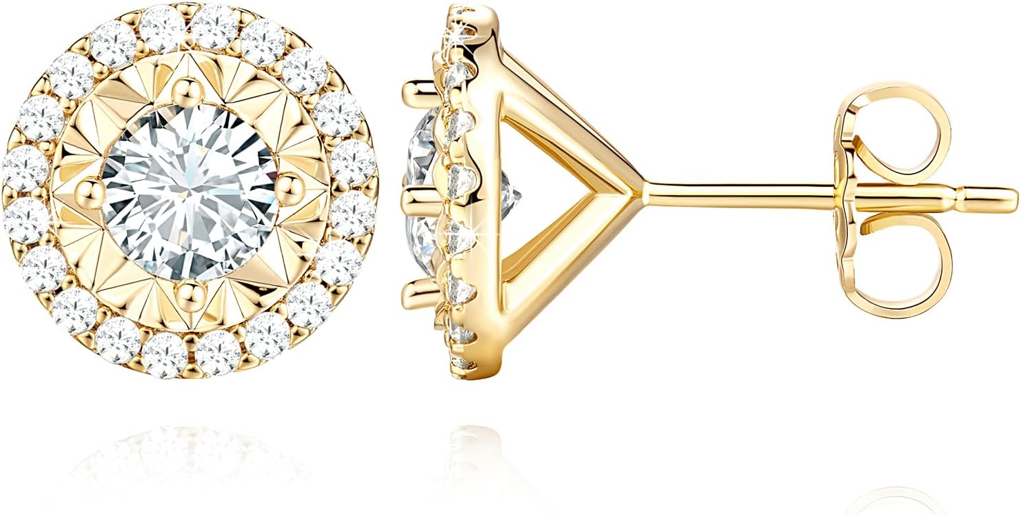 Gold Stud Earrings 14K Gold Earrings for Women Sparkling Cubic Zirconia Earrings Studs Small Earring for Women 11mm