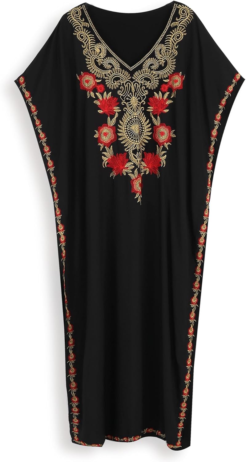 EDOLYNSA Moroccan Kaftan Dresses for Women Plus Size Caftans Loungewear Embroidered Beach Kaftan Cover up mumu House Dress