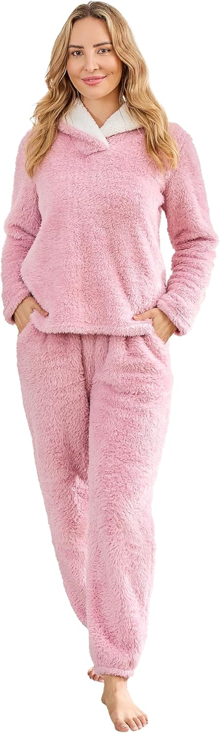 Fluffy Womens Pajama Sets, Pjs with Pants Winter Fuzzy Pajamas Fleece Soft Cozy Warm Ladies Loungewear
