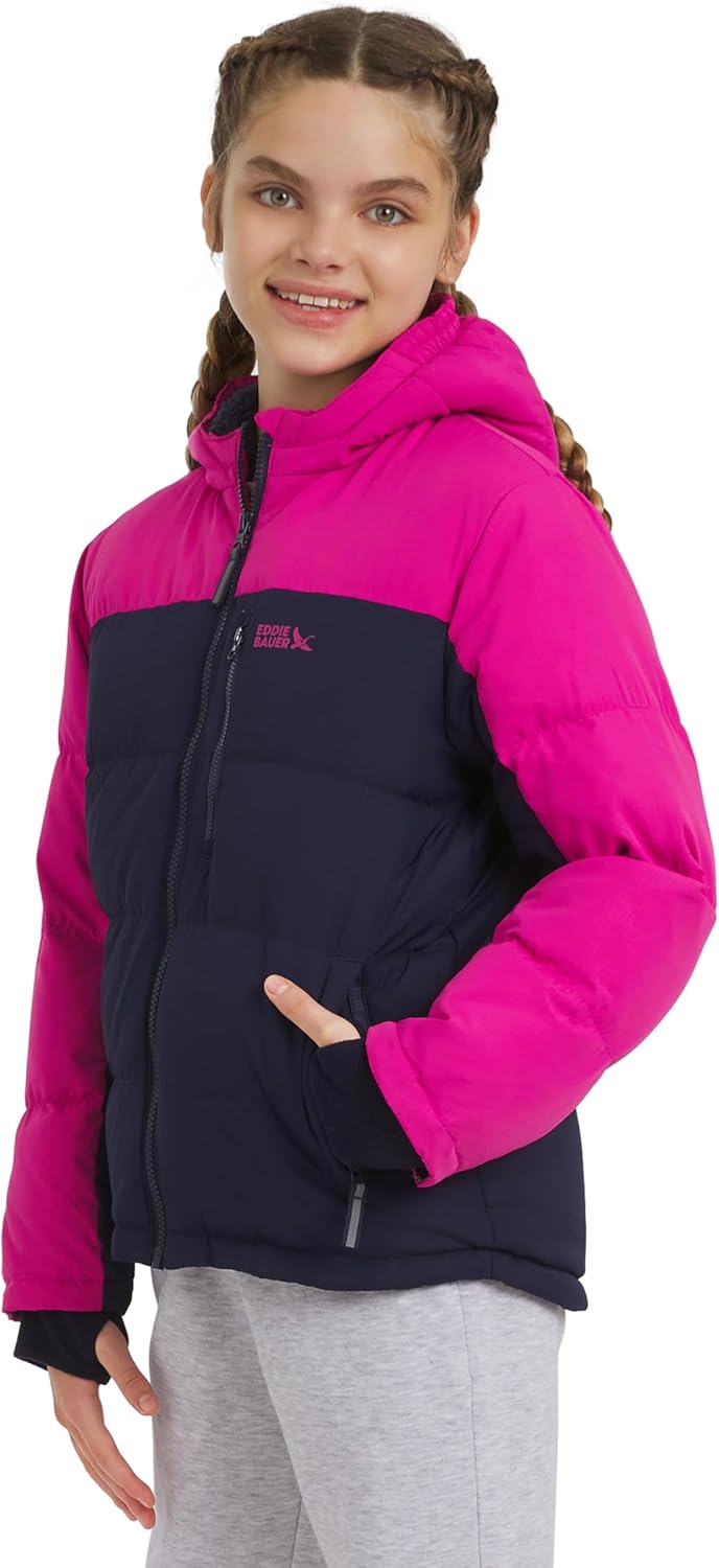 Eddie Bauer Girls' Classic Heavyweight Faux Fur Lined Hooded Insulated Down Jacket