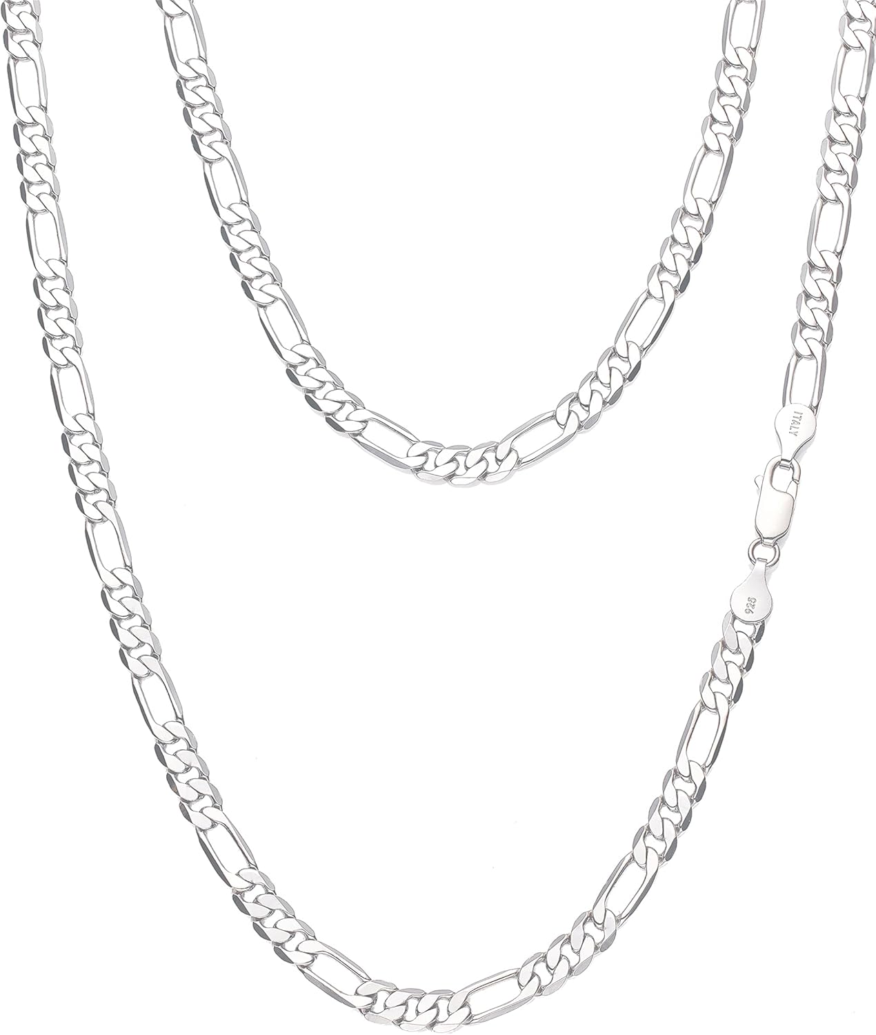 925 Sterling Silver Figaro/Cuban Chain Necklace for Men Diamond Cut Silver Link Chain for Women 16-30 Inches