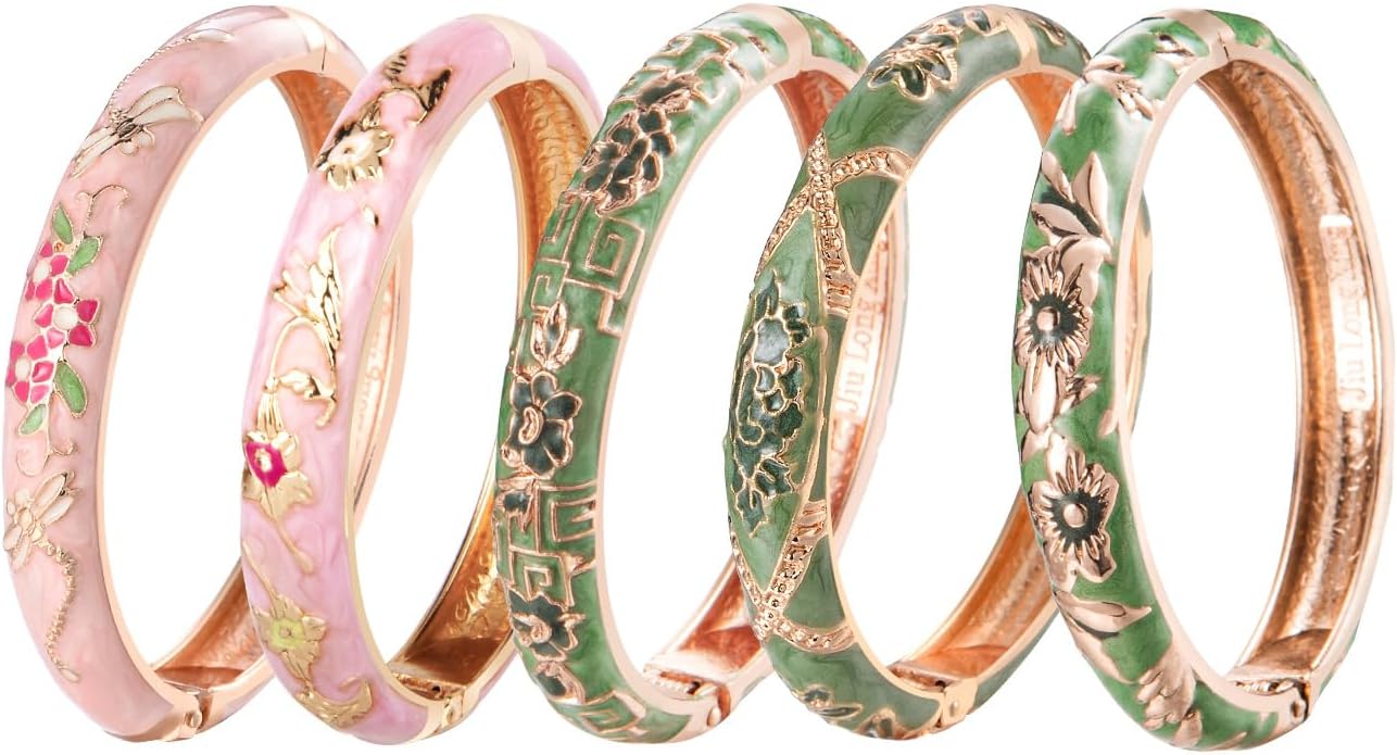 UJOY Bangles 5 Pcs Enamel Jewelry Set Rose Flower Engraved Cloisonne Bracelets Pack in a Box 5PCS